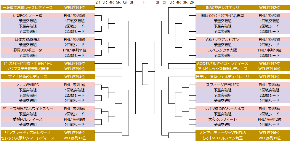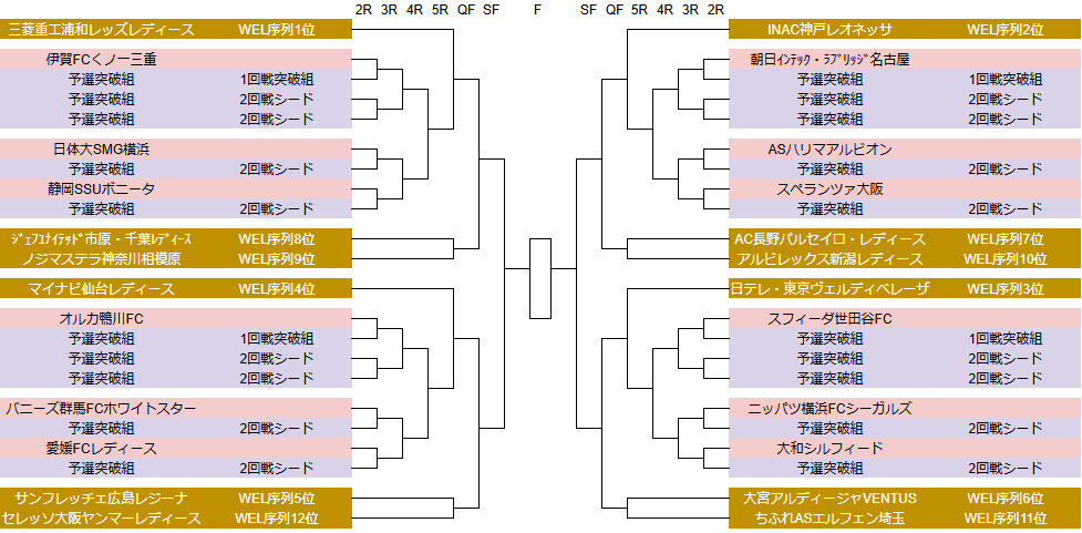 皇后杯 JFA 全日本女子サッカー選手権大会(以下:皇后杯)について、SOMPO WEリーグ(以下:WEL)勢はリーグ戦の順位通りに対戦が組まれるであろう、というところまでわかりました。