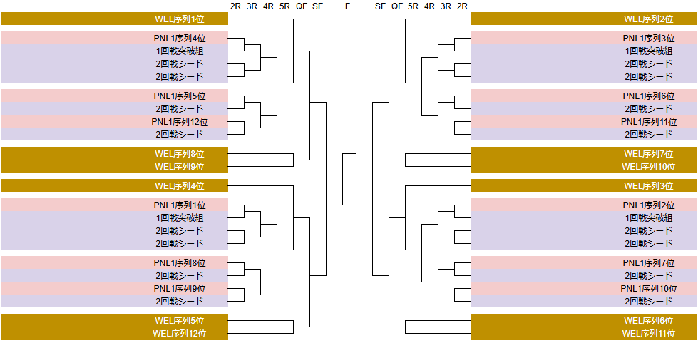 確かに1~4位が3回戦までにPNL1勢と対戦しない、勝ち上がった場合に3回戦では「5~8位」×「9~12位」になるようには配分されていますが、どうにもしっくりきません。