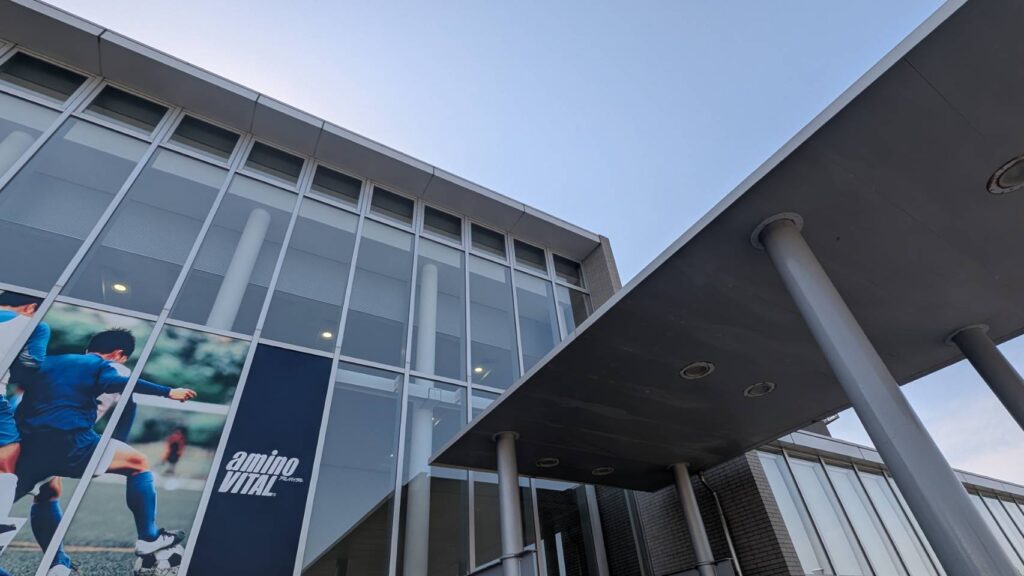 細見、窪田、椿が記者たちから取材を受けたクラブハウスの出入り口です。