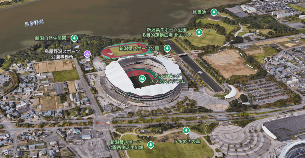 また作中でこのスタジアムがある新潟ですが、新潟のスタジアムの周辺にある建物なのか?