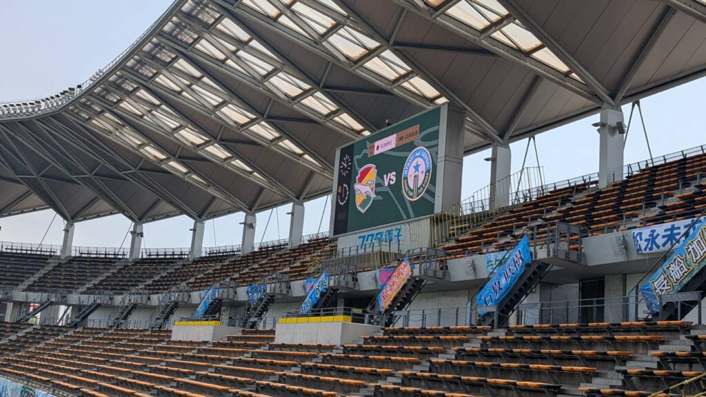 オーロラビジョンはホームサポーターに見えやすいよう、南側(アウェイ側)スタンドにあります。