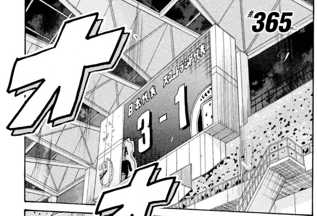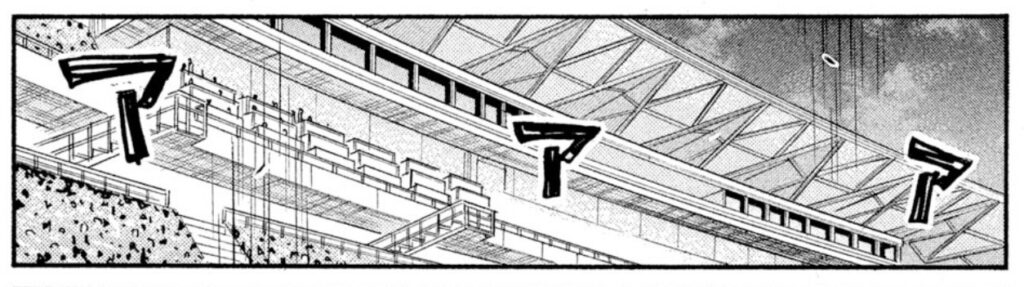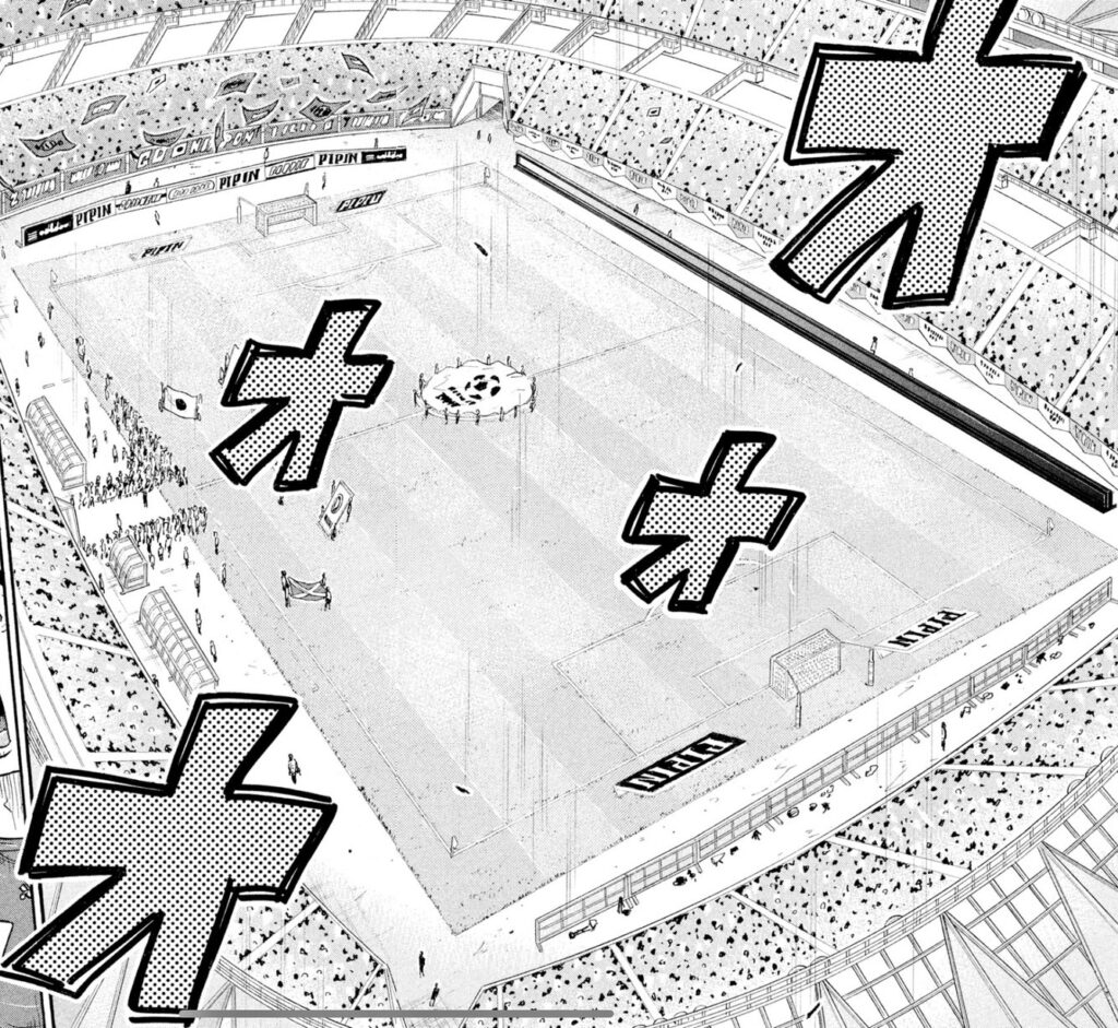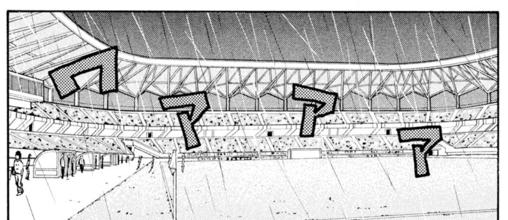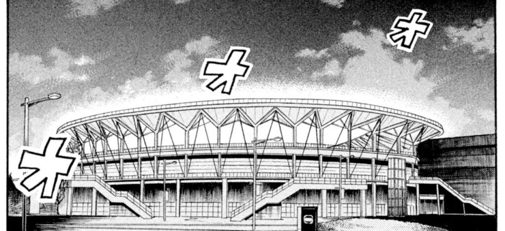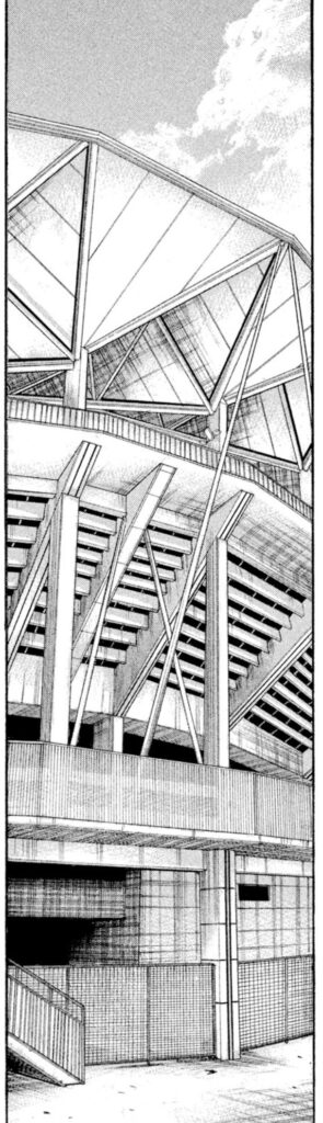 連載序盤の2008年に初登場したスタジアムですが、外から描かれたのは2015年の#361が初でした。